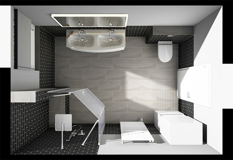 • Duschelement 100 cm, 5-Eck, rollstuhlbefahrbar
